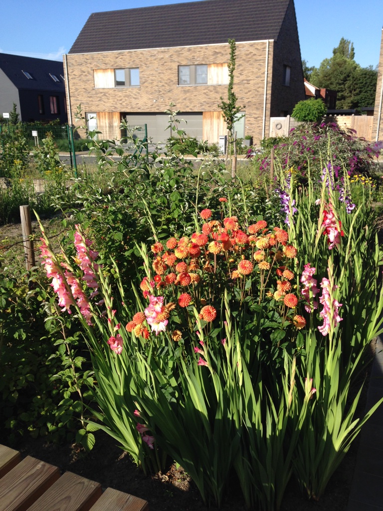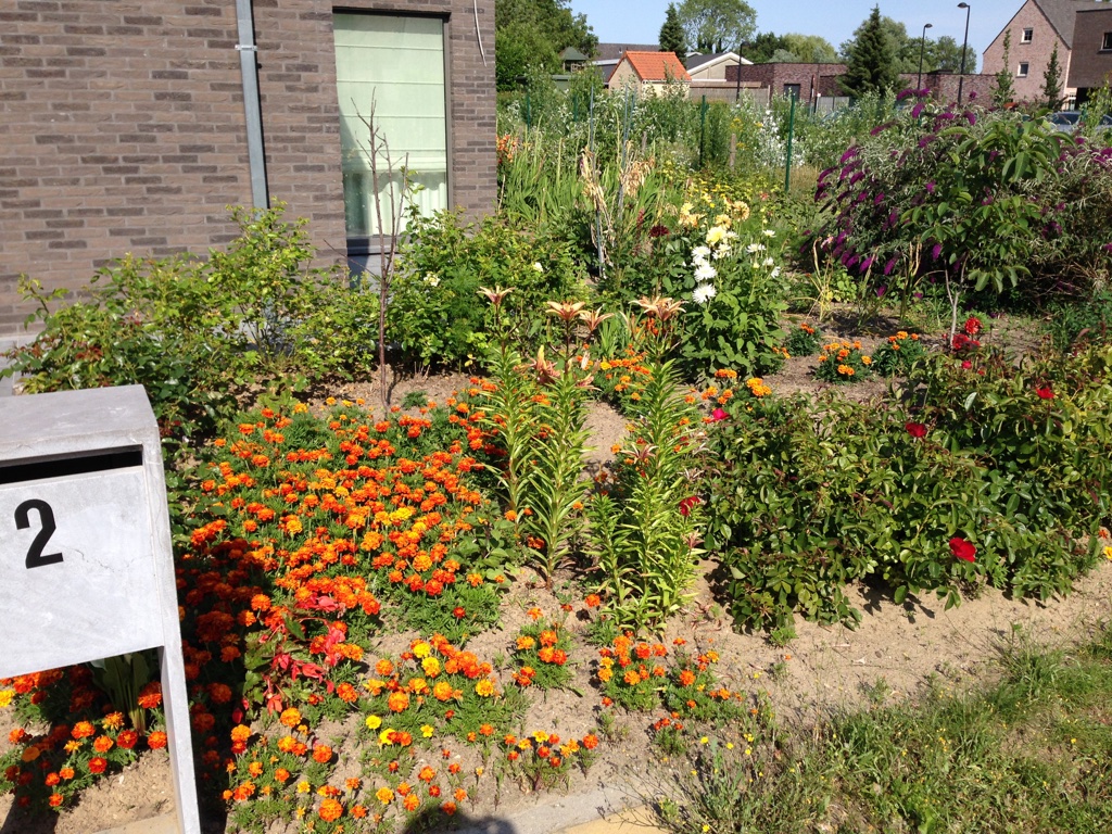 Cleaning up my ground gave me plenty of time what I wanted to do with my garden. One thing was sure, I did not want grass (unexpectedly, that turned out to be a very wise idea since my neighbors don’t succeed to keep their grass alive). So I decided to start experimenting. The street facing part of the garden would be used for flowers. While the back garden would be used to see if I could grow vegetables.