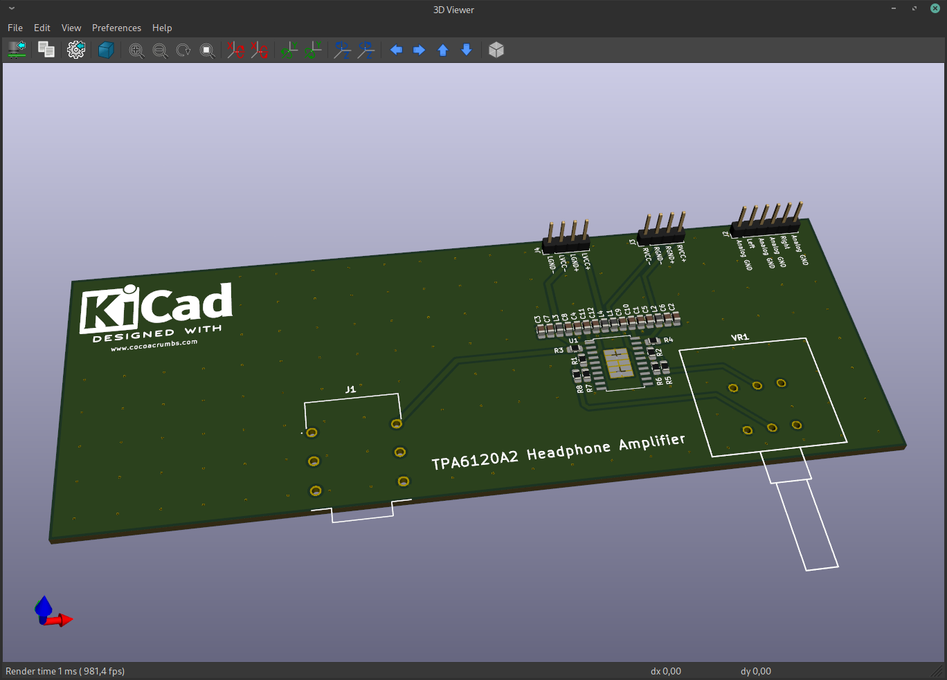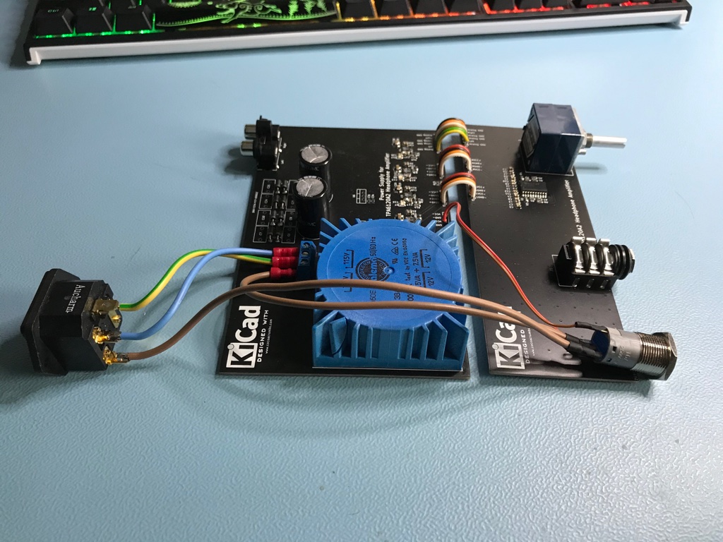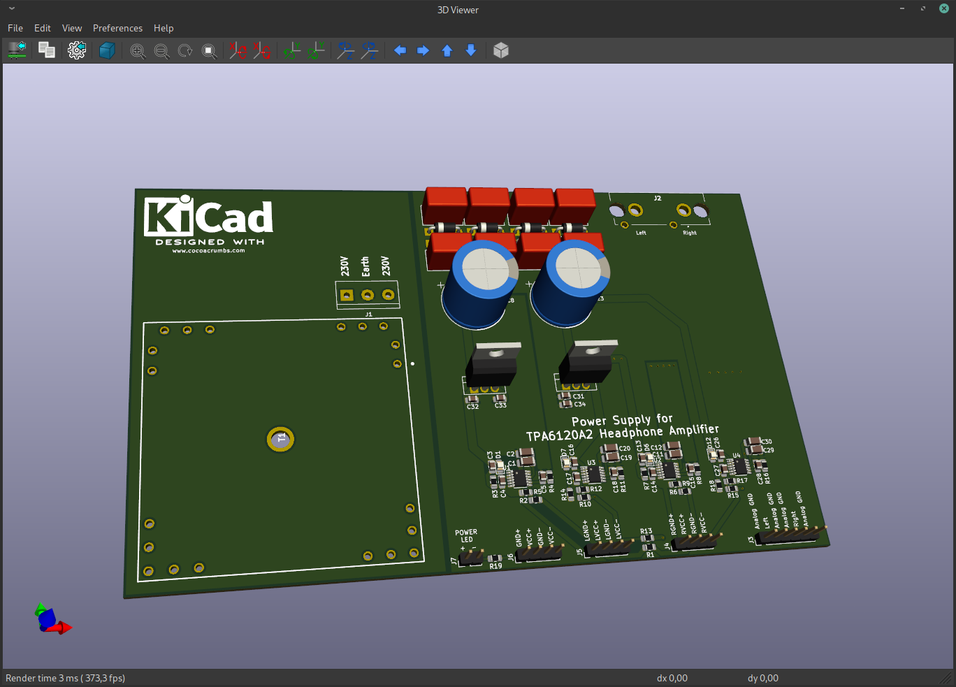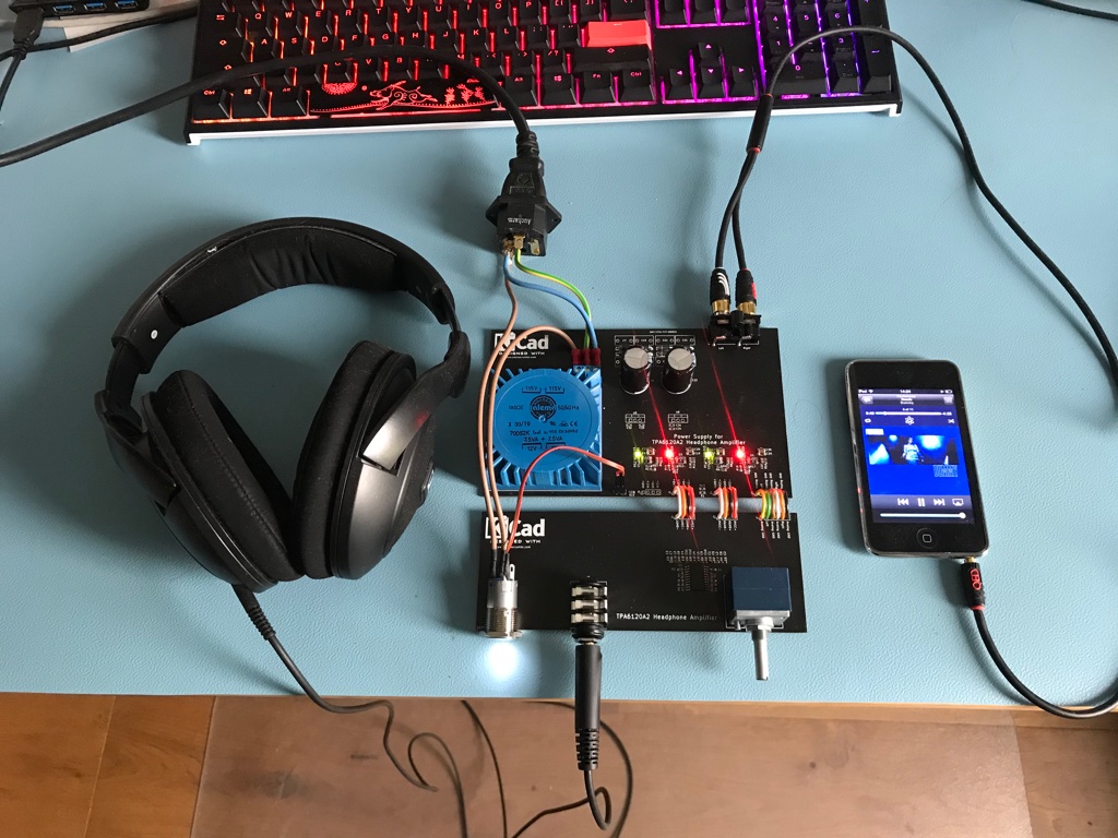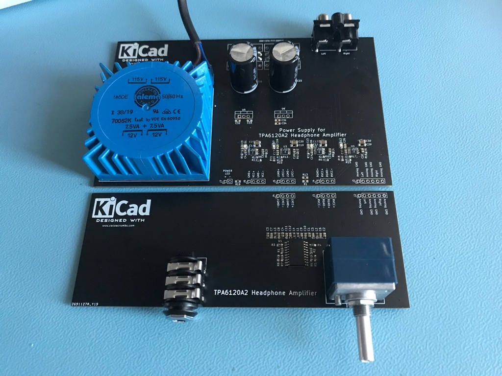 In the end I decided to use 2 PCB’s (one each for the headphone amplifier and the power supply) instead of one big 160 by 160 mm PCB.
