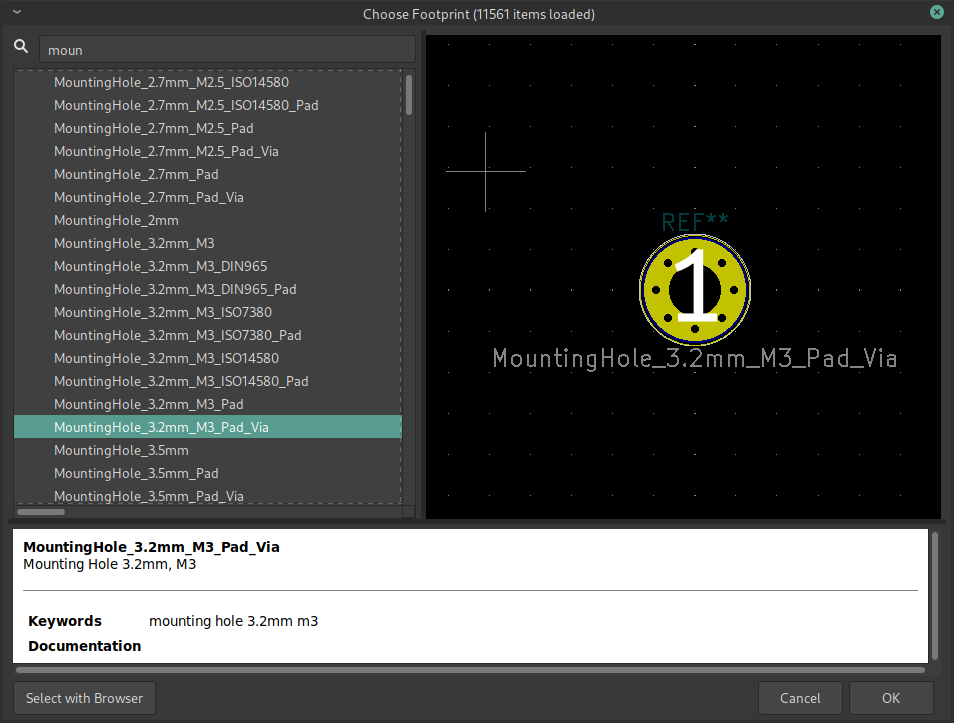 A bit more difficult is adding text in a nice looking font and a cute logo. For this, I created some bitmaps and used the “KiCAD Bitmap to component converter” which converts these bitmaps to footprints. It’s a bit tedious since there is no easy way to scale footprints in KiCAD. To get the correct size I played with various DPI (Dots Per Inch) settings in the “KiCAD Bitmap to component converter” tool until I got the footprint sizes I wanted.