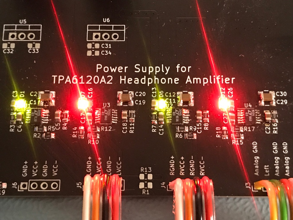 No surprises here neither. I did spend a bit more effort this time to closely follow the PCB layout guides from Analog Devices for the LT3045/3094 voltage regulators to wring out the last drop of performance out of them (having plenty of room helps a lot to avoid making compromises).