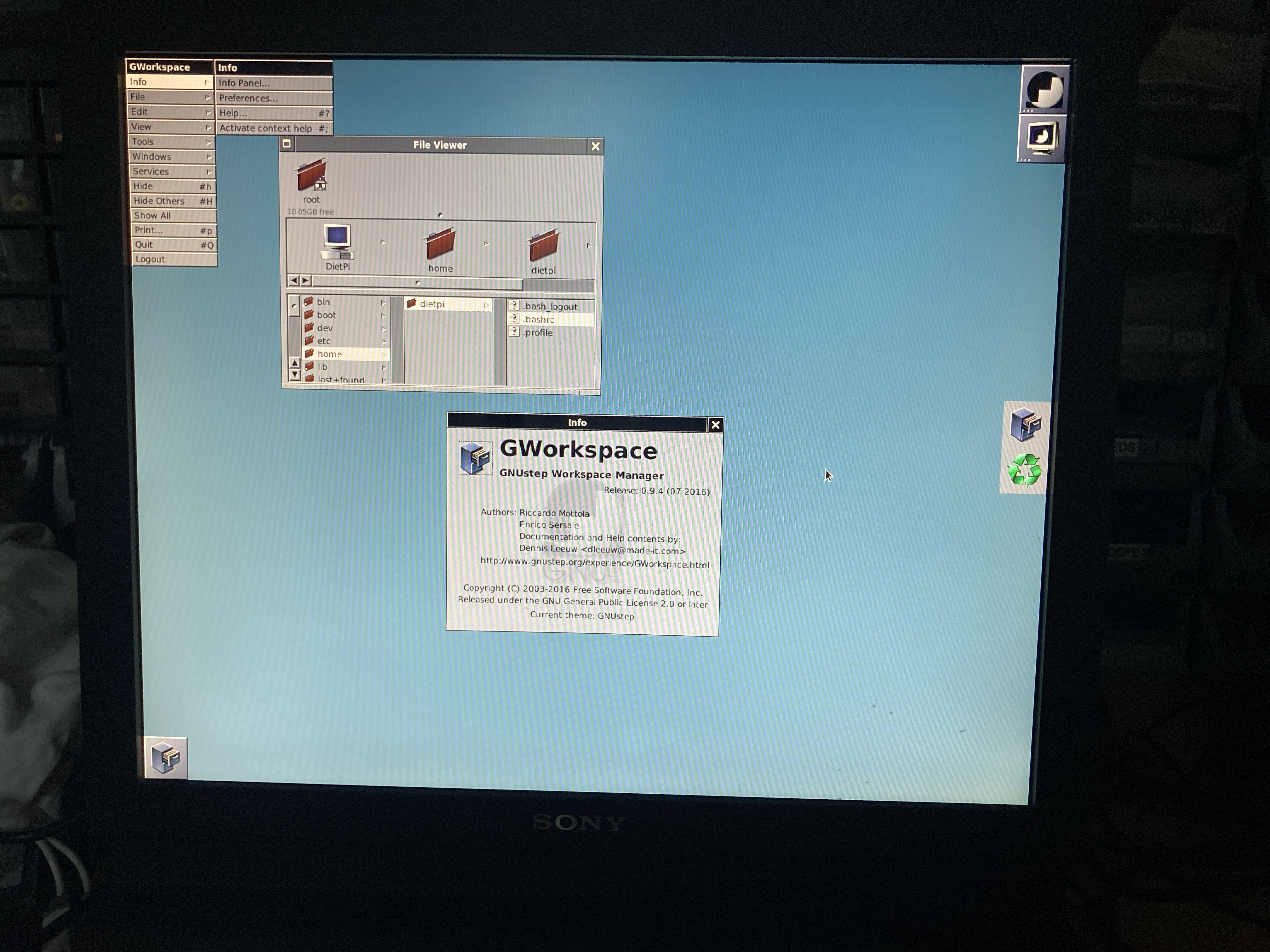 Using PINN I installed 2 OS’s on the Raspberry PI. The stock Raspberry Pi OS and DietPI which offered an easy way to install the GNUStep desktop environment.