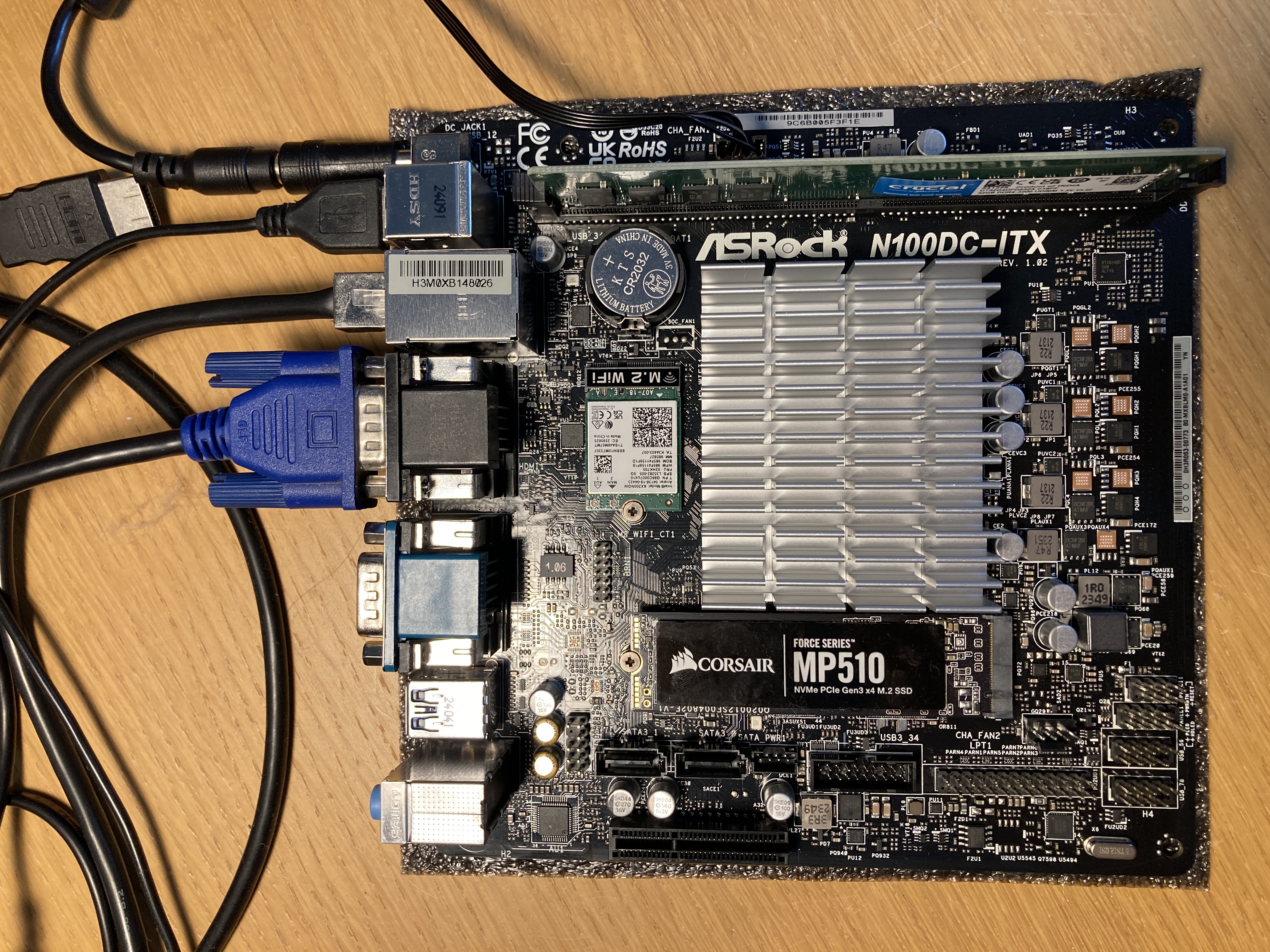 Next was the choice of CPU. For a long time I was thinking to use a Raspberry Pi 5 with 8 GByte of RAM and an SSD for mass storage instead of an SD Card (for reliability). But then I stumbled on the Intel N100 CPU which is roughly as performant and ASRock has an interesting mini ITX mainboard, N100DC-ITX that would just fit inside the upscaled case. The fact that this solution could run the real OpenStep 4.2 with VirtualBox made me decide to choose this solution. I found the installation instructions to get OpenStep 4.2 running inside VirtualBox here (it was less than evident to get it running).